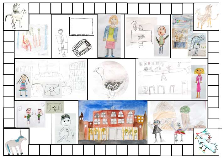 What better present for a leaving Head Teacher than a framed silk painting made by children in her school? The children drew pictures of their favourite things in school as well as pictures of the Head, the school motto and house badges. I put these together to make a design that the children transferred it to silk and painted it.